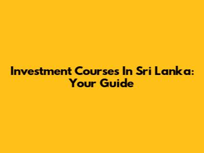 Investment Courses In Sri Lanka: Your Guide